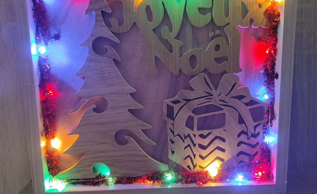 cadre joyeux noël sapin et cadeaux lumineux